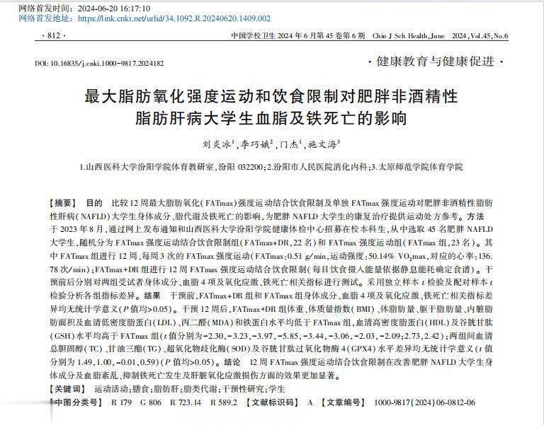 参考资料[1]刘炎冰,最大脂肪氧化强度运动和饮食限制对肥胖非酒精性脂肪肝病大学生血脂及铁死亡的影响,.山西医科大学汾阳学院体育教研室,2024-06